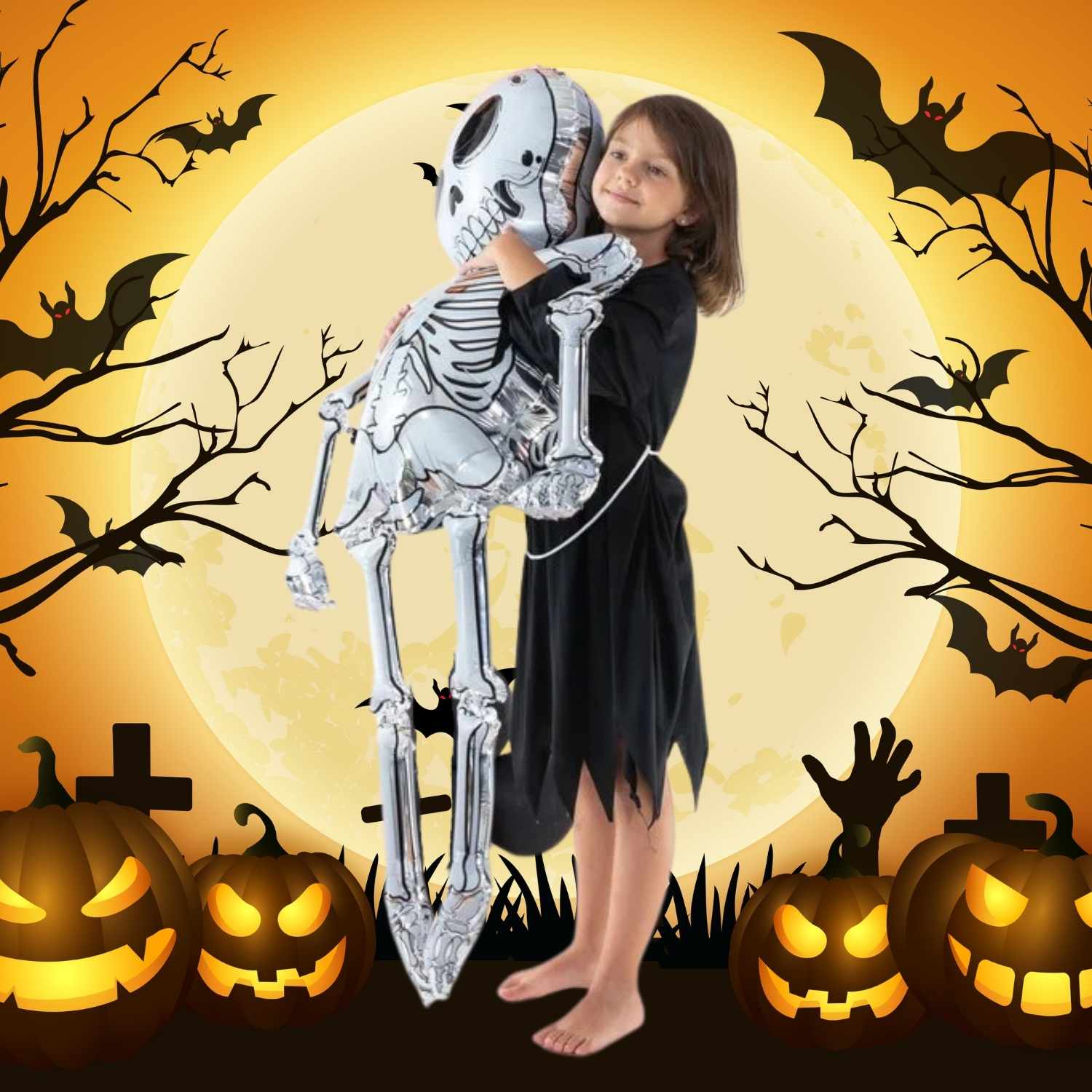 Ten gigantyczny balon w kształcie kościotrupa o imponujących wymiarach 154 cm wysokości i 78 cm szerokości jest gotowy, by roztańczyć parkiet i rozbawić gości. Jego wielkie oczyska i szeroki uśmiech mówią wprost: „Halloween będzie strasznie udane”.