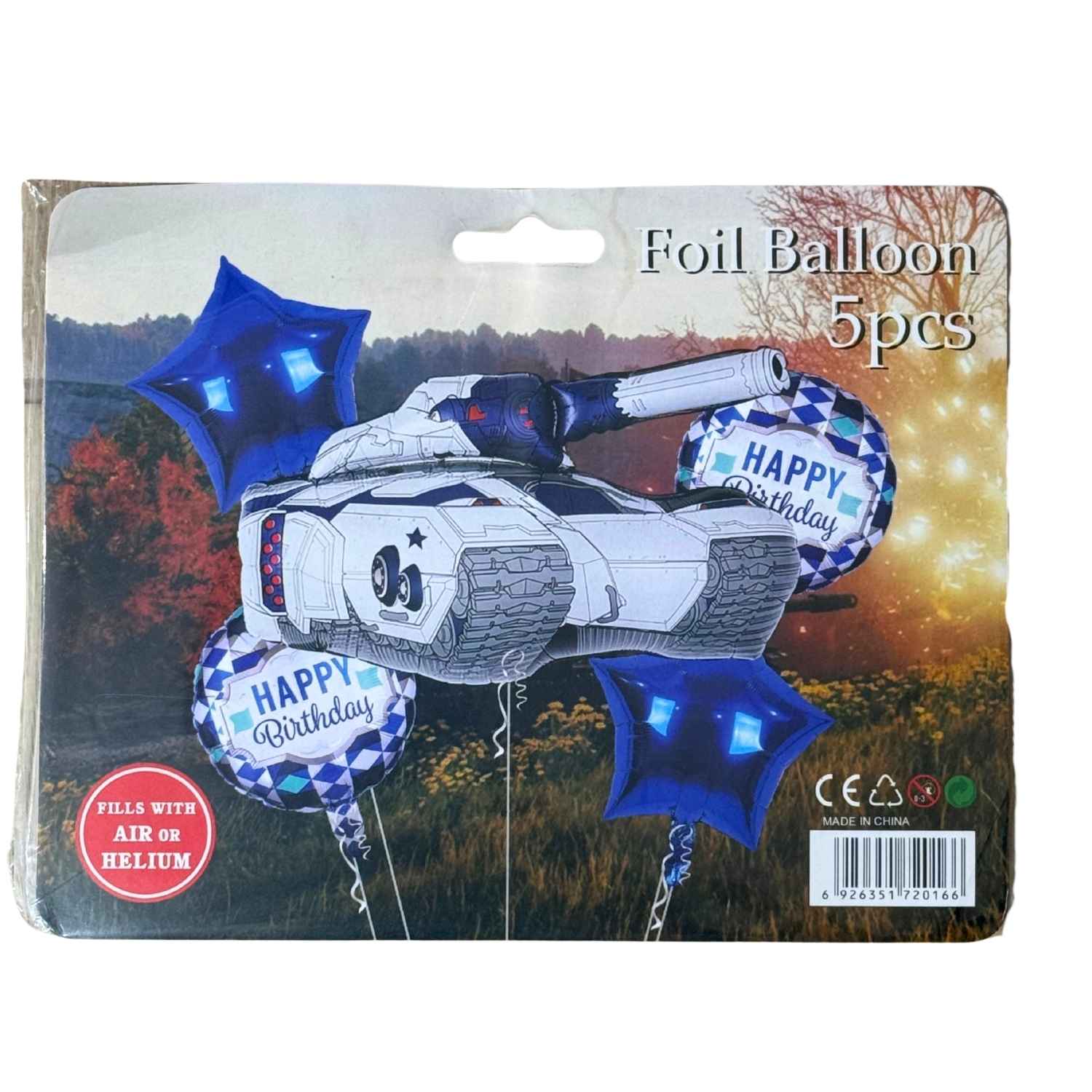 Zestaw balonów foliowych z motywem czołgu to hit każdej imprezy dla chłopca – efektowny, kolorowy i trwały.
